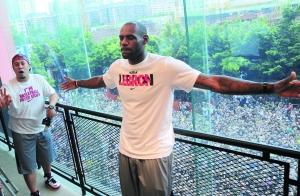 詹姆斯在活动现场“享受”场外球迷的疯狂欢呼。