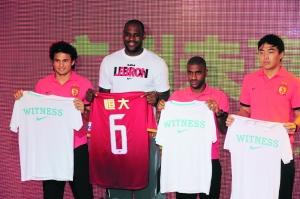 值得一提的是,詹姆斯昨天除了和球迷互动外,还和广州恒大足球队的三名球星埃尔克森、穆里奇、冯潇霆来了一次冠军“面对面”。恒大上赛季成功卫冕了中超冠军,而热火也刚刚完成了NBA总冠军的卫冕,4位球星的相遇肯定要上演识英雄重英雄的戏码。活动现场三位恒大球星向詹姆斯赠送了现场烫印了詹姆斯名字的恒大球衣,詹姆斯则回赠了自己的“胜者为王”纪念版T恤给恒大的三位球星。