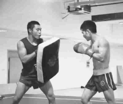 ■上海散打选手吴强(右)在训练 实习生 郭子明 摄