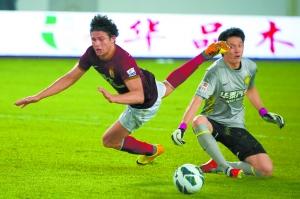 国安门将杨智放倒埃尔克森瞬间。
