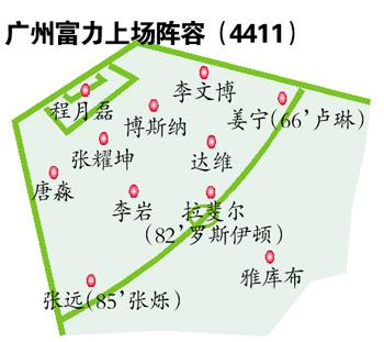 广州富力2-0青岛中能 主场6连胜升至第6位