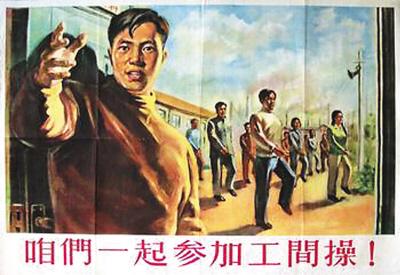 图为上世纪五六十年代工间操的宣传画,如今的工间操已经难觅中青年人的身影。