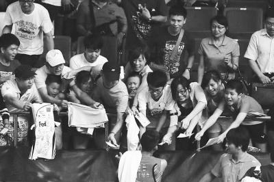球迷的热情,是中国举办羽毛球赛的最大底气,图为世锦赛上球迷追林丹签名