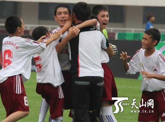 参与互动(0) 山东潍坊希望杯国际青少年足球联赛上,赢球后迪力夏提和队员拥抱。图片来源:天山网。