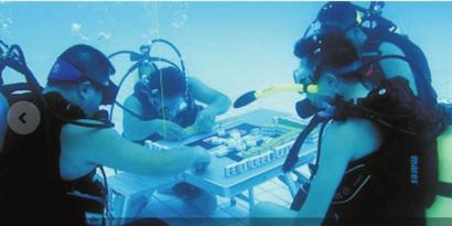 天气太热玩友水下打麻将 想尝试要有潜水证(图)