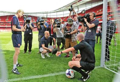 阿森纳主帅温格(左)客串鹰眼推广大使。