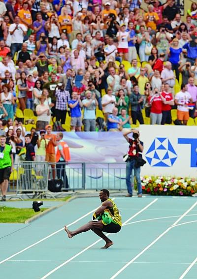 本报讯 北京时间昨天凌晨,在俄罗斯莫斯科举行的2013年世界田径锦标赛结束了最终日最后六个决赛项目争夺,结果博尔特领衔的牙买加队以37秒36获得男子4乘100米冠军,这是博尔特本人继08年奥运会、09年世锦赛和12年奥运会之后,第四次在世界大赛上包揽三冠。