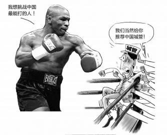 可怜泰森竟不识中国城管的威名。杨仕成制图