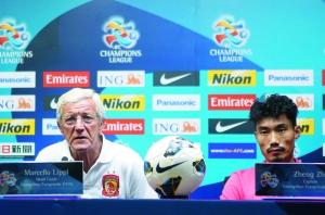 里皮和郑智昨天出席发布会。信息时报记者 陆明杰 摄