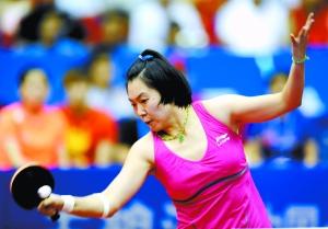 在世界乒乓球女子攻削大战中,中国队李晓霞穿着裙装上阵。 本报记者 白宇摄