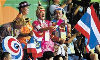 昨天在羽毛球赛场上,四位泰国大叔举手投足都是泰国范儿中国风。他们的中文“加油”说得字正腔圆,歌曲《上海滩》、《甜蜜蜜》也是中国观众耳熟能详的,这样“接地气”的拉拉队人气自然很旺,许多观众在他们的带动下,都帮着泰国队加油打气。