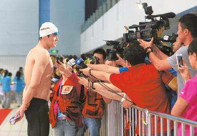 沈阳奥体中心的全运会游泳比赛,因为有孙杨参赛成了最火热的地方,无论是场外被爆炒的票价还是场内记者为采访提前排号的场面,无不彰显孙杨的热度。昨天,孙杨在400米自由泳的决赛中以3分43秒68的成绩夺冠后,混采区“都快打起来了”。