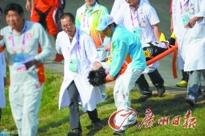 在昨天进行的小轮车男子越野赛半决赛中,解放军选手、上届全运会冠军孙越在过第二个U形弯道时摔倒,造成头颈部重伤。