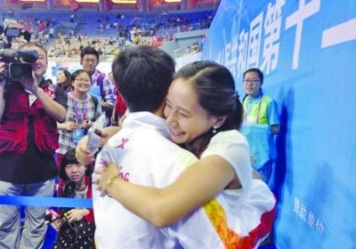 滕海滨张楠全运赛场秀恩爱 混合区温情拥抱(图)