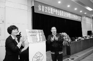 国家体育总局体育文化发展中心主任梁晓龙(右)为天津体育学院体育文化研究中心体育文化遗产专业委员会揭牌