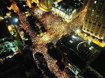 在里约街头,一场由教师发起的游行,演变为大规模暴乱。这场游行原本旨在呼吁改革教育制度、改善教师待遇,但随着游行队伍规模扩大出现了骚乱,不少暴徒混杂其中,在街头与警察直接冲突,他们焚烧街边的车辆、对店铺实施打砸抢,还向警察投掷汽油弹。不少人手持火把,在主要街道蜂拥穿行,并沿路放火,场面之混乱,令推特上有人惊叹,就像是现实版的灾难恐怖片《僵尸世界大战》。