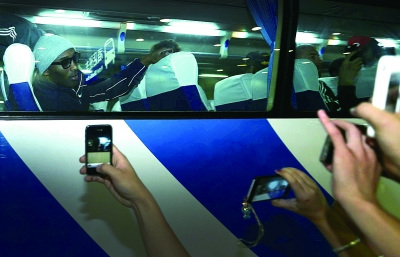 湖人队拥有科比、加索尔等巨星,在中国球迷中间人气非常高。昨天,很多球迷专程赶到机场,热情迎接偶像,有些球迷甚至在看到科比后激动得泪流满面。
