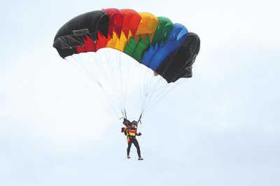 高空跳伞夫妻档温馨留影 青梅竹马情史浪漫(图)