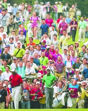 高尔夫观赛人潮涌动追随伍兹 看老虎还是看球?