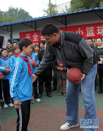 姚明探访雅安受灾学校 亲自教孩子打篮球(图)(5)