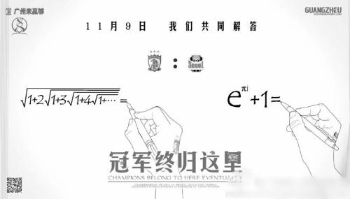 亚冠决赛次回合开打之前,广州恒大足球俱乐部再度公布了一张官方海报,主题依旧是“冠军终归这里”,不过内容却变成了一道数学题。