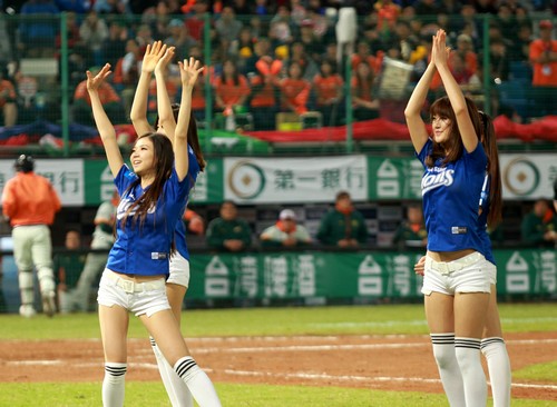 美女啦啦队助阵棒球赛 蓝衣热裤秀蛮腰长腿(图)