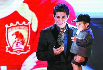 昨天仪式出镜率最高的当属恒大外援、即将重返巴甲联赛的阿根廷人孔卡。这一方面是因为他无可争议地当选本赛季中超先生,另一方面是因为他有个形影不离的小跟班——儿子本杰明。只要父亲走到哪儿,本杰明就会一路跟下去,即便走上领奖台,小家伙也丝毫不怯场,那闲庭信步的小大人样令人忍俊不禁。提到离开恒大,孔卡眼眶浸润地说,“来中国这几年,我感受到了幸福。中国足球非常好,特别是这里的球迷对我很好。恒大俱乐部也是一家令人难舍的优秀俱乐部,能够在里皮教练手下踢球,是我的荣幸。我不想走,但很多原因需要我走,谢谢中国的一切……”