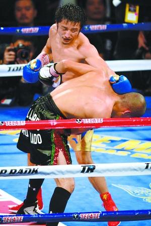 “KO(击倒对手),KO!”由于场面陷入“一边倒”,看台上有拳迷直呼,希望邹市明速战速决。后者也不时发动猛攻,打得对手头直晃荡,身体还数度歪斜。不过,尽管右脸已显血肉模糊,但胡安顽强硬扛,始终没有倒下。终场铃声响起,3名边裁6个回合都判给邹市明10分,他以60比54、60比54和60比52轻松告捷。