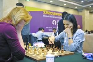 立陶宛选手奇米里杰(左)与原世界冠军诸宸在国际象棋比赛中