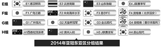 2014亚冠联赛分组抽签揭晓 中超诸强再碰老对手