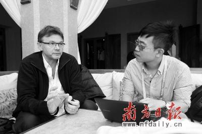特鲁西埃(左)接受本报记者采访。丰臻 摄