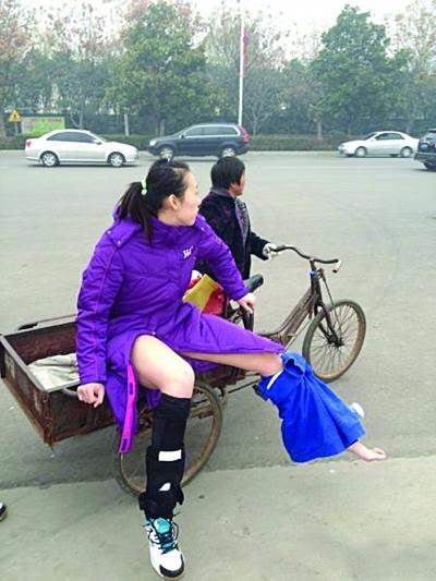 好心的大妈用三轮车送受伤的杨婕回酒店。