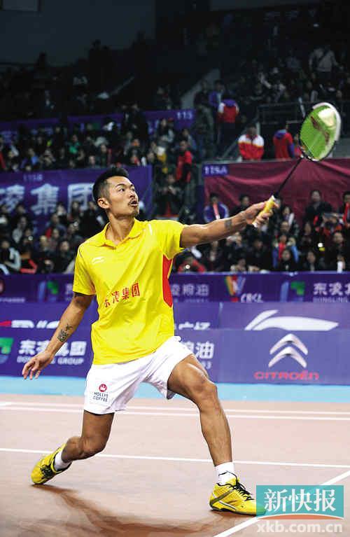 ■在昨晚的比赛中,林丹的状态并不好,输给了广东队中21岁的小将田厚威。新快报记者孙毅/摄