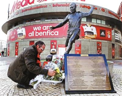 和许多隐退后依旧活跃在国际足坛的名宿不同,尤西比奥低调沉稳,2004年欧洲杯,本土作战的葡萄牙点球淘汰英格兰,欢呼庆祝中尤西比奥双膝跪下,默默亲吻那块绿茵,仿佛感谢神的眷顾。葡萄牙在决赛中再度负于大黑马希腊后,尤西比奥安慰C罗的一幕令人印象深刻。昨天C罗在个人推特上发布了一张与前辈的合影:“永远的尤西比奥,愿你安息。”供图/新华社