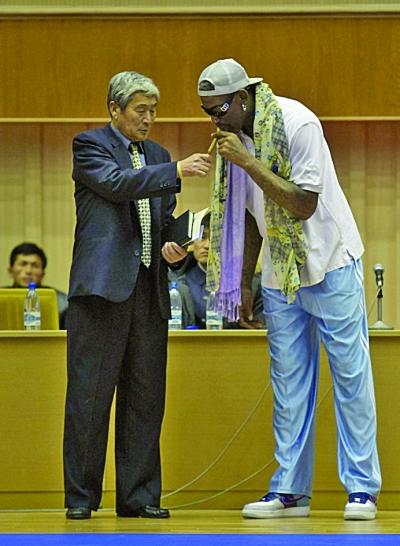 罗德曼备战带队苦训 朝鲜官员主动为其点烟(图)