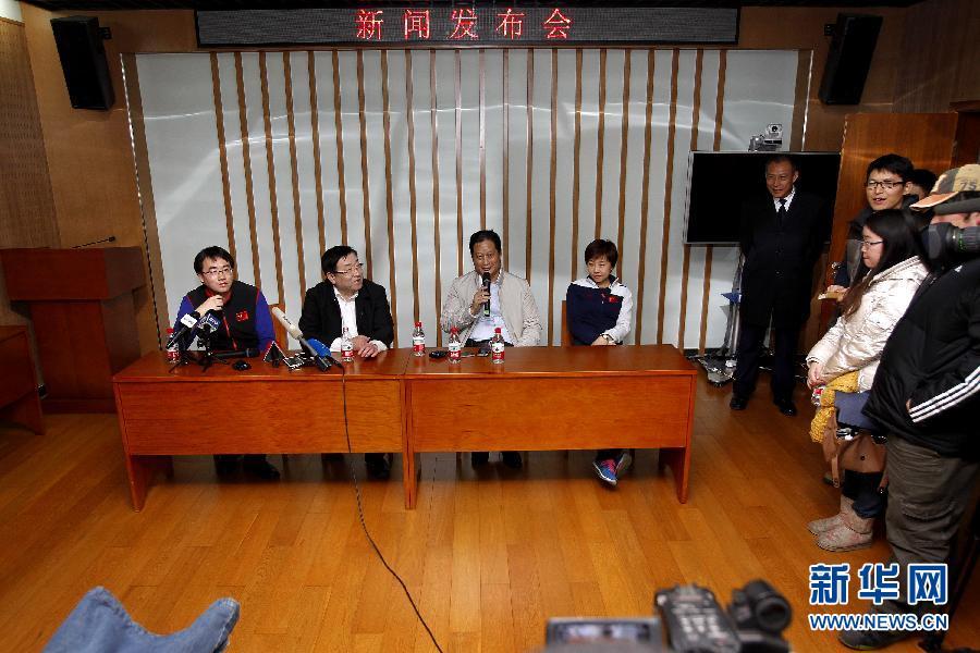 1月16日,短道速滑队队医出席新闻发布会现场。当日,中国冬奥会四金得主、短道速滑女将王濛在上海进行索契冬奥会备战的过程中不幸受伤骨折,目前正在复旦大学附属华山医院接受治疗。知情人士透露,王濛为右踝胫腓骨双骨折,预计将实施切开内固定手术。新华社发 (丁汀 摄)