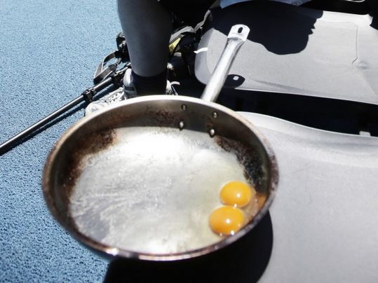 中新网1月17日电 据台湾“今日新闻网”报道,炎热的天气,是澳网两大不受欢迎的名产之一(另一样为苍蝇),热到可以煎蛋也已不是新闻。今年澳网高温破表,仍有人苦中作乐,拿出平底锅来煎蛋。