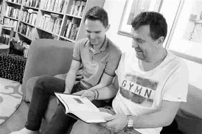 ■ 父子俩翻阅他们共同撰写的球队纪念册