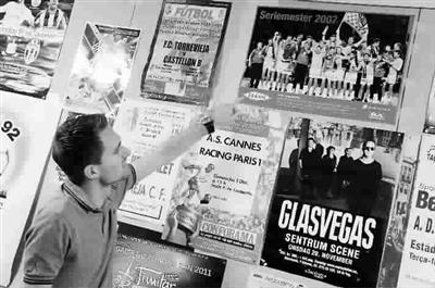 ■ 他手指的是卑尔根白兰恩队二○○七年夺得挪威联赛冠军的海报