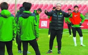 曼萨诺带队首训。 本报记者 贾同军摄