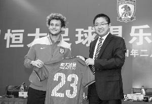 ▲没有孔卡,恒大新外援、意大利球星迪亚曼蒂(左)将挑起重担