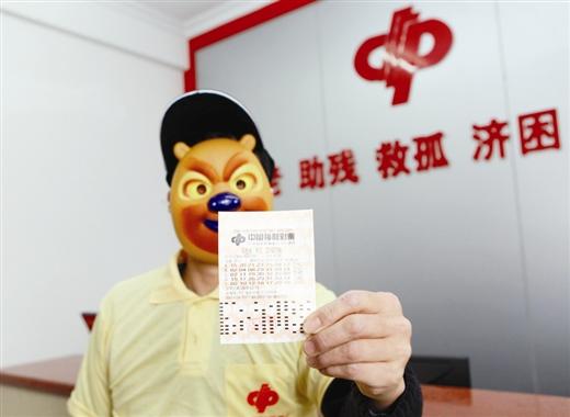 男子中624万戴熊出没面具亮相 获奖归功执着(图)