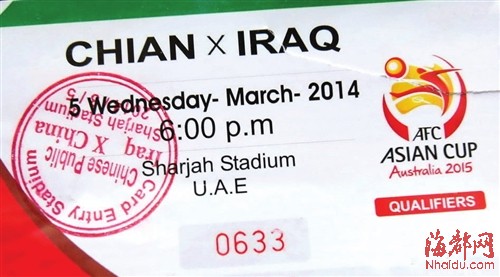 今年3月5日,中国男足迎来2015亚洲杯预选赛最后一战,在西亚客场对阵伊拉克。但在赛前,亚预赛中伊大战赛事组织方的一个低级错误引来了不小的争议。在此役的观战球票上,赛事组织方竟将中国国名印错,CHINA变成了CHIAN,此事引起了迪拜华人球迷的集体抗议。