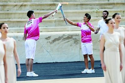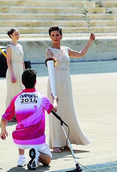 昨天下午,距南京青奥会开幕108天之际,希腊雅典大理石体育场这座现代奥林匹克运动的发祥地,举行了南京青奥会火种采集暨网络火炬传递仪式,4名运动员在采火现场进行传递,中国希腊各两名,两名中国选手分别是南京网球女选手孙子玥和男子跨栏选手江帆。