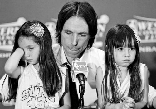 2010年,当时效力于太阳队的纳什与如日中天的湖人相遇,结果被淘汰出局,遗憾与总决赛擦肩而过。赛后的发布会上,纳什难掩悲伤:“我知道,每个人都会去考虑我是否能进入总决赛,”纳什说,“你知道,也许我不再可能进入总决赛。但是,我对自己所效力的球队感到满意,能与这样的家伙们一起战斗,我很满意。”两个小女儿陪伴在爸爸身边,流下了泪水,若干年后她们或许才能懂得纳什当时的心情,但是这个镜头还是足够让太阳队的球迷感动落泪。