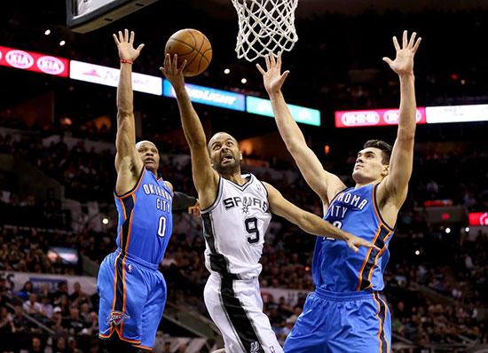 历史性的时刻在次节4分26秒出现,帕克助攻莱纳德暴扣得手,马刺队依然保持10分领先,他们行云流水的进攻让雷霆队难以招架,而接下来,比赛进入了帕克的个人表演时间,作为今年季后赛冲击篮下最多的球员(场均上篮12.3次),帕克总能一步过掉不管是维斯布鲁克还是塞弗洛萨,还是兰姆、费舍尔杀到篮下。