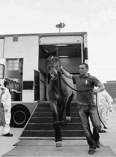 6月2日,一匹赛马被工作人员牵出。当日2点,运载上海环球马术冠军赛赛马的货机降落在上海浦东国际机场,加上5月31日首批运抵的23匹良驹,共有60匹世界顶尖参赛马匹从欧洲空运至上海。6月6日至8日,上海将举办环球马术冠军赛分站赛。