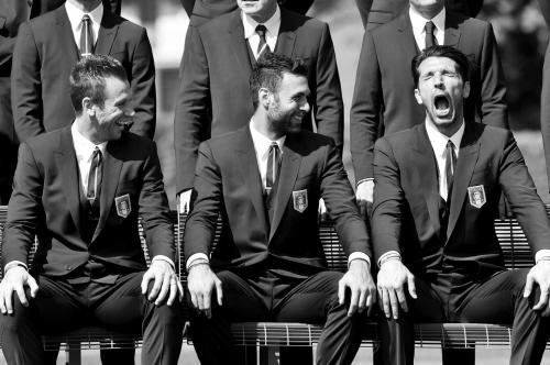 日前,意大利国家队在佛罗伦萨拍摄了一组官方全家福。意大利队向来有“男模队”的美称,当天他们个个身着正装,更显得酷帅无敌。不过,在烈日下被摄影师摆弄了大半天,这对球员而言并不比训练轻松。队长布冯忍不住打起了哈欠,他的嘴巴还没合上,就被身边的队友“抓了个现形”。(综合)