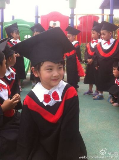 人民网北京6月5日电 (吴亚雄)森碟正式从幼儿园毕业啦!田亮在微博晒出女儿毕业典礼的照片,森碟穿着小小学士服手拿毕业证有模有样地拍照留念,细心的网友发现小姑娘胖了一些。