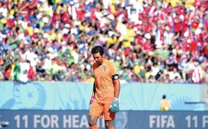 也许是被巴西的骄阳晒晕了头,意大利队上半时踢得并不好,节奏偏慢,中前场传切失误多如牛毛,反观“死亡之组”的黑马哥斯达黎加踢得风生水起,上半时结束前,接边路传中,哥队10号球员鲁伊斯头球攻门,在门线附近被意大利门将布冯扑出,然而,本届世界杯开始应用的“鹰眼”技术派上了用场,因为此球击中横梁弹地时,皮球整体越过了门线,1:0,哥斯达黎加领先。此后意队主帅普兰德利调兵遣将,先后将卡萨诺等人换上,以期绝地反击,但纵观下半时,倒是哥斯达黎加将比分扩大的机会多一些。90分钟后,1:0的比分再无改变。